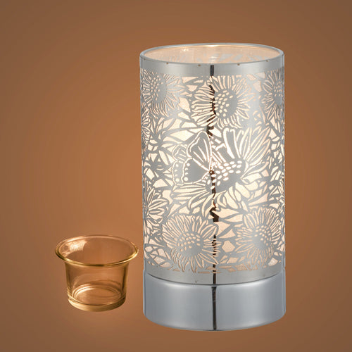 7" touch lamp-Fragrance Wax Melts Warmer -Electric Candle Essential Oil Burner-Metal Silver Sunflower Table Decor by Peterson Housewares & Artwares